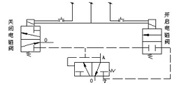 ① 開啟:在二位三通電磁先導(dǎo)閥的手動(dòng)旋鈕處于與縱軸平行的“一”位置情況下,旋轉(zhuǎn)二位三通電磁先導(dǎo)閥的手動(dòng)旋鈕,實(shí)現(xiàn)開啟手動(dòng)操作,動(dòng)作程序如自動(dòng)開啟程序。