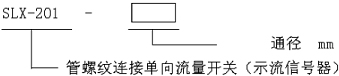 SLX-201型單向機(jī)械式示流信號(hào)器用于測(cè)量流經(jīng)管道的液體流動(dòng)狀態(tài), 如:水、油、乙稀、乙二醇等對(duì)銅無腐蝕作用的液體。是一種新型的檢測(cè)裝置,廣泛用于水電站供水系統(tǒng)斷水保護(hù)。采用日本歐姆龍微動(dòng)開關(guān),動(dòng)作輕巧。 二、型號(hào)說明