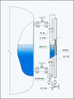 因運(yùn)輸或其他振動,可能引起磁記憶開關(guān)接點(diǎn)狀態(tài)錯(cuò)亂,在接線前,用磁鋼在連通管外上下拉動浮子,模擬動作一次,使磁記憶開關(guān)接點(diǎn)狀態(tài)恢復(fù)正常。然后再接線、投入使用。
